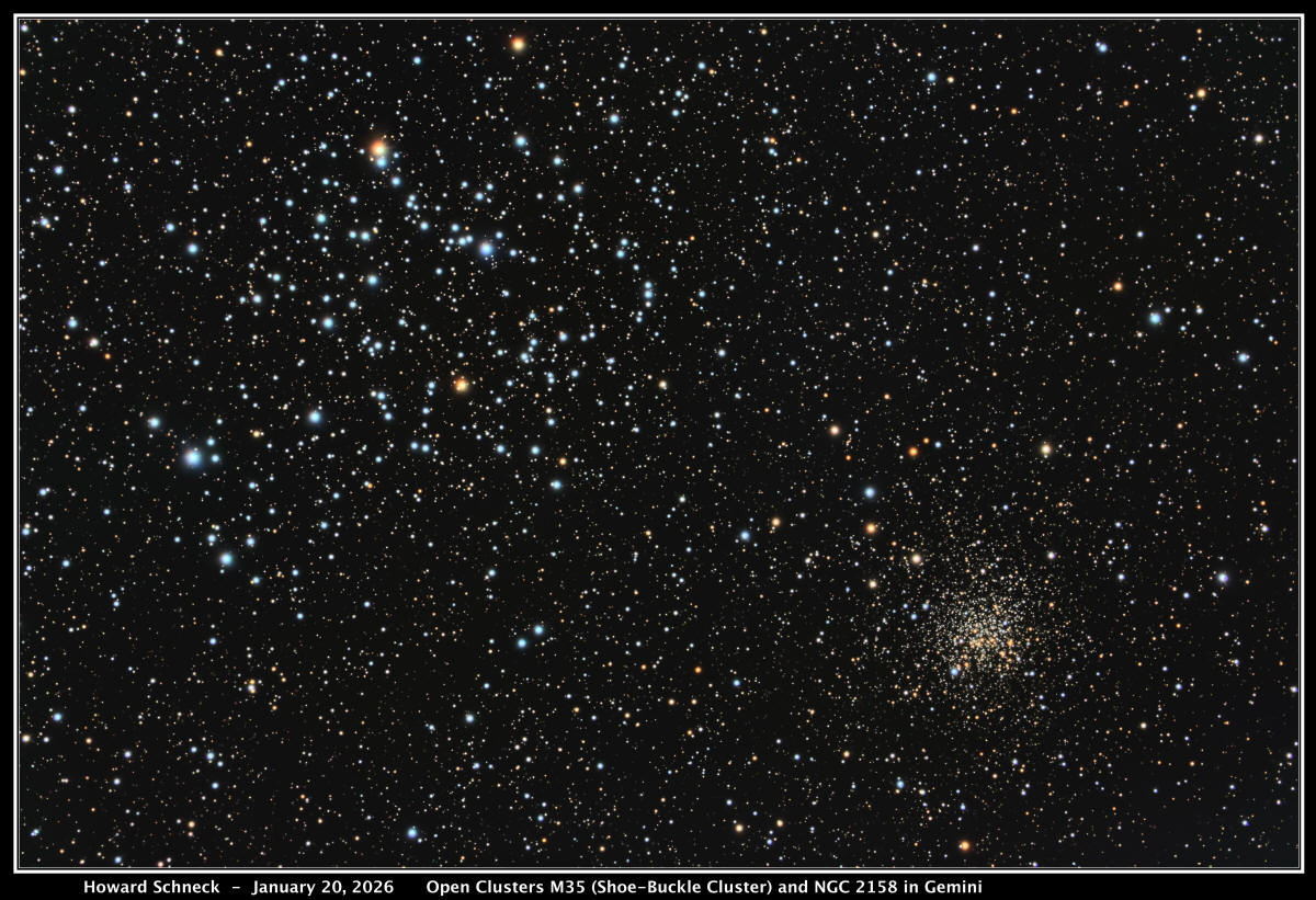 sight. Messier 35 (upper left, mouseover for labels) is a young, loose open cluster about 2,800