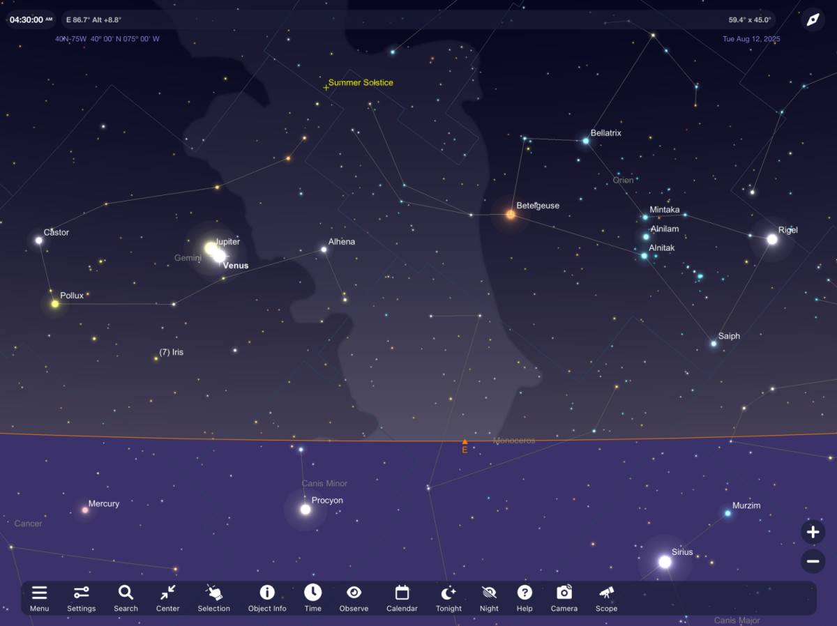 and 36.7° altitude at 7:24 pm EST when this snapshot