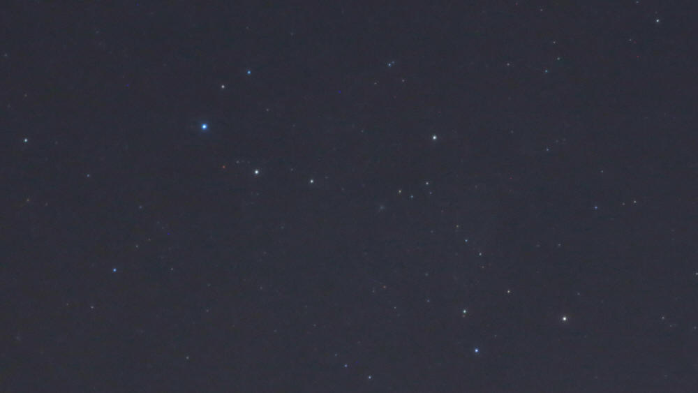 The Coathanger asterism is also known as Brocchi's Cluster and Collinder 399, even though it's no longer considered a star cluster. This image of it was captured on September 16, 2016, at 10:19 pm EDT from Swede Run in Moorestown, NJ, despite the presence of the full Harvest Moon 70° to the east. Taken with a Canon 6D digital SLR camera and a Canon 400 mm f/5.6L telephoto lens on a fixed tripod, then cropped to about 80% of the original size yielding a field of view 4.1° wide x 2.7° high. Exposed 2 seconds at f/5.6, ISO 5000, 4200K white balance. Both the camera and the picture were rotated somewhat to present the Coathanger in a "normal" hook-up orientation. When observed in binoculars, it generally looks "upside down." From a dark site on a moon-free night, the Coathanger is visible to unaided eyes as a small fuzzy spot in the constellation Vulpecula on the western side of the Summer Triangle, about a third of the way from Altair to Vega. Mouseover for labels. As suggested by the increasing values of the Flamsteed numbers from left to right, east is to the right.