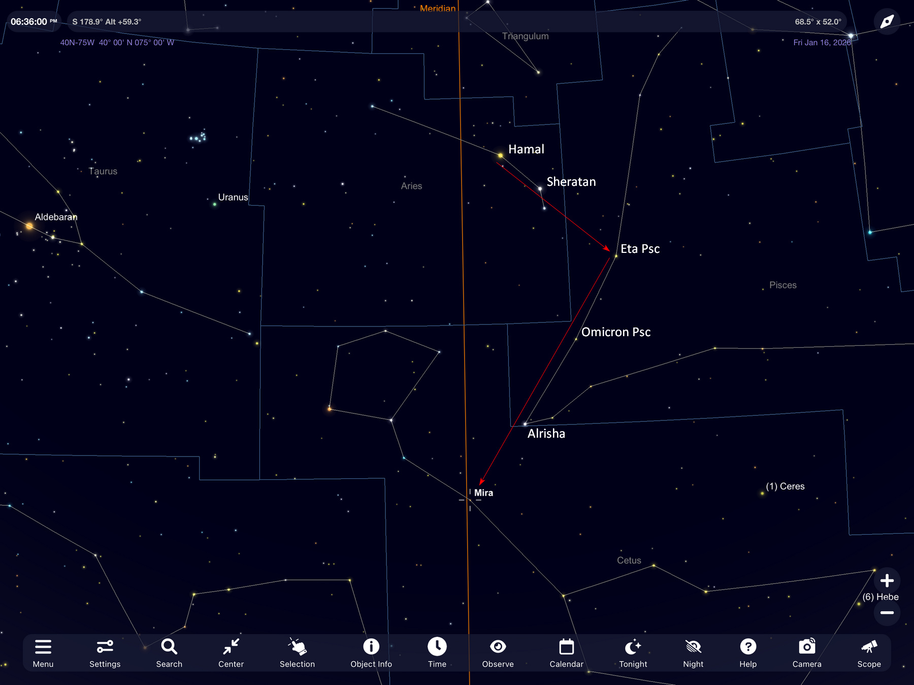 Mira Finder Chart, Bob King article about Mira, posted at S&T on January 21, 2026.